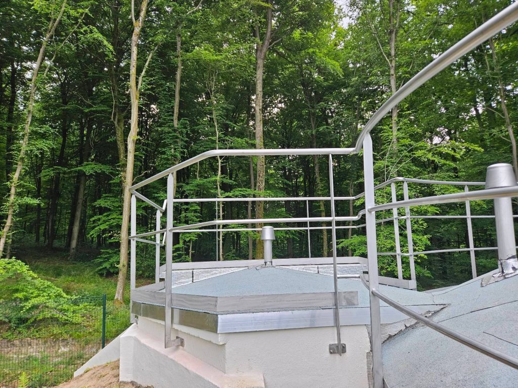 Sécurisation du réservoir semi-enterré de Bazinval, avec le renouvellement des équipements de serrurerie et sécurisation tels que : Garde-corps sur mesure, capots doubles avec barres antichute, portes, échelles et escalier.